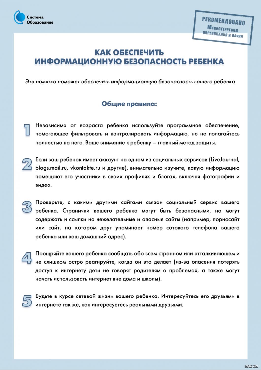 С учетом этого Вам предлагаются правила работы в сети Интернет для различных возрастных категорий, соблюдение которых позволит обеспечить информационную безопасность ваших детей.